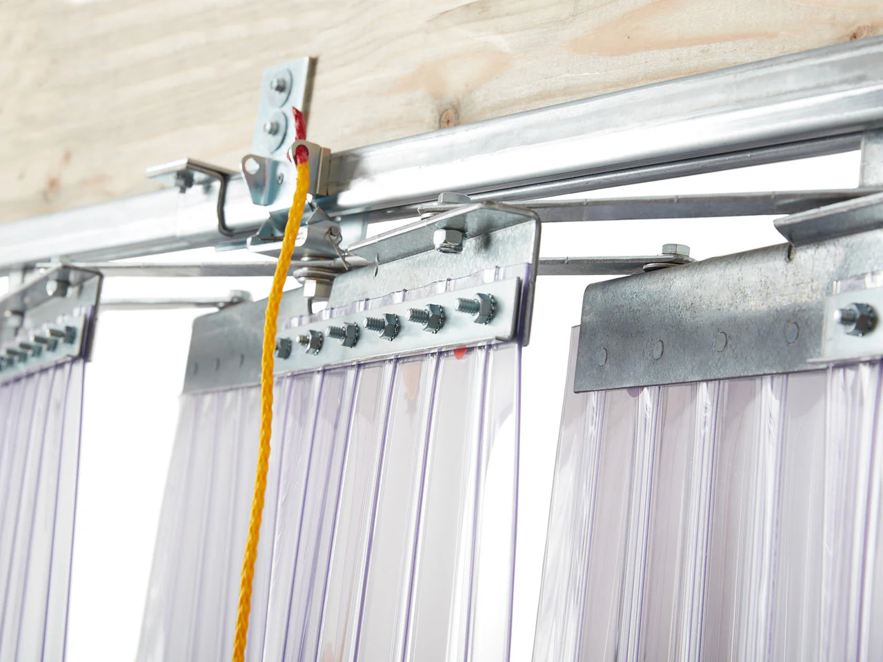 It is a stainless steel or GI mounting system used to fix PVC strip curtains securely.