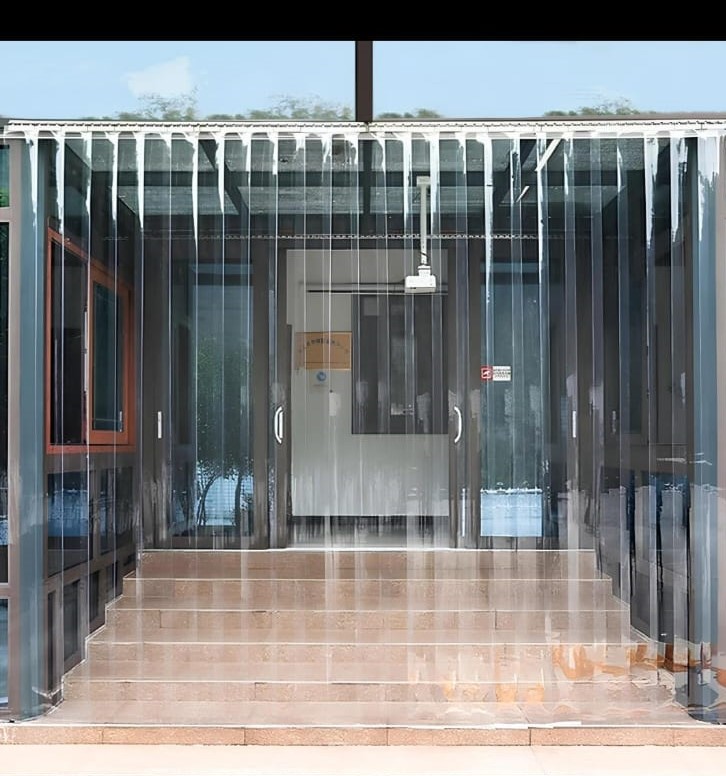 These are clear, flexible PVC strip curtains commonly used for doors, warehouses, cold rooms, factories, shops, and partitions. They are made from soft PVC material that allows easy movement while maintaining visibility and insulation.