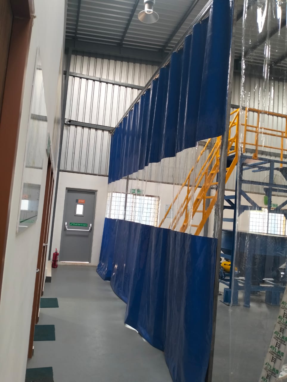 Welding Grade PVC curtains protect workers from harmful UV rays and welding sparks.